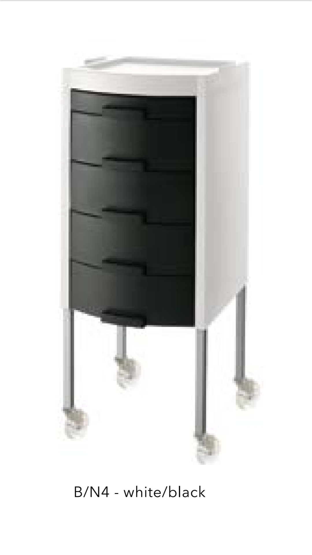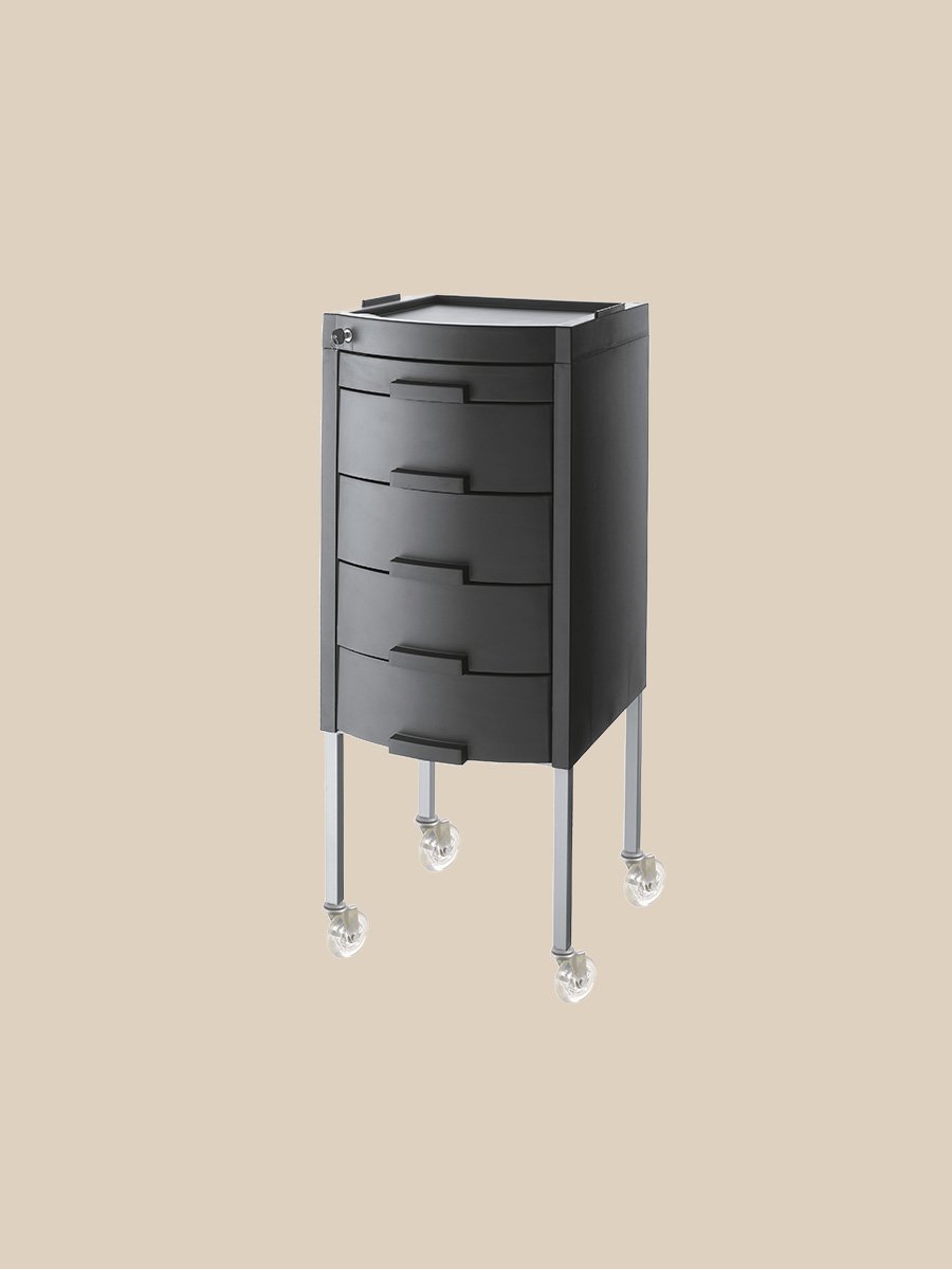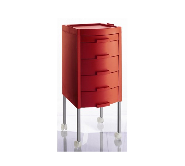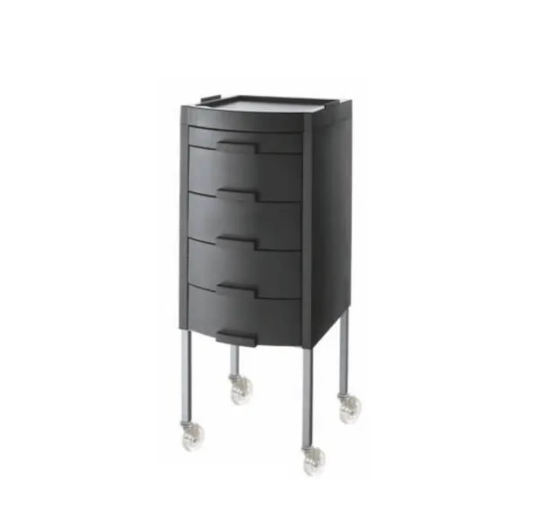 Carrello da lavoro professionale per parrucchiere. Un carrello agile ed elegante dotato di cinque cassetti e una struttura il metallo leggerissima.