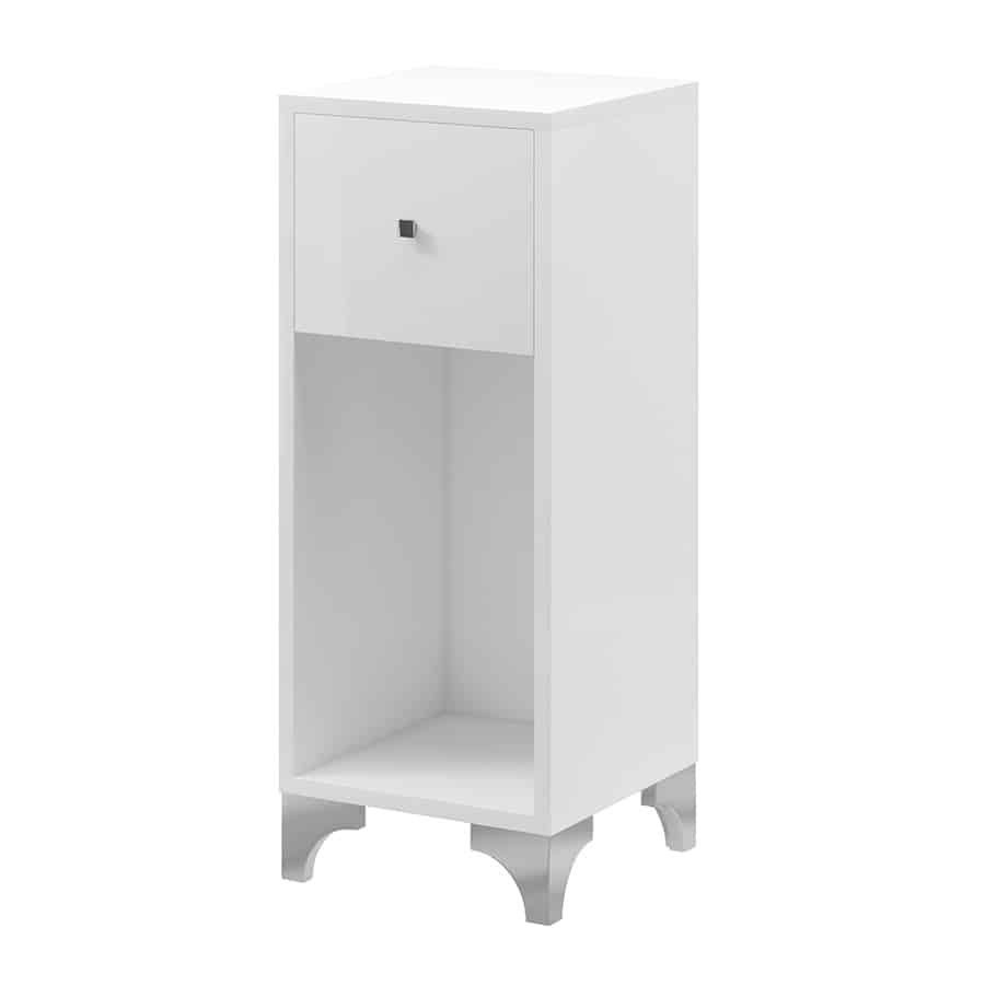 Mobile con cassetto piccolo, struttura in nobilitato e piedi in metallo lucidato. Brad è il complemento di arredo dal design essenziale e funzionale. Scegliere questo mobiletto significa salvaguardare lo spazio all’interno del salone non rinunciando ad un pratico portaoggetti.